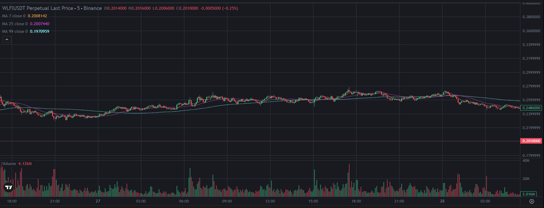Chart of WLFI/USDT pre-market perpetual (5-minute timeframe) between 26 to 28 August 2025. Source: binance.com